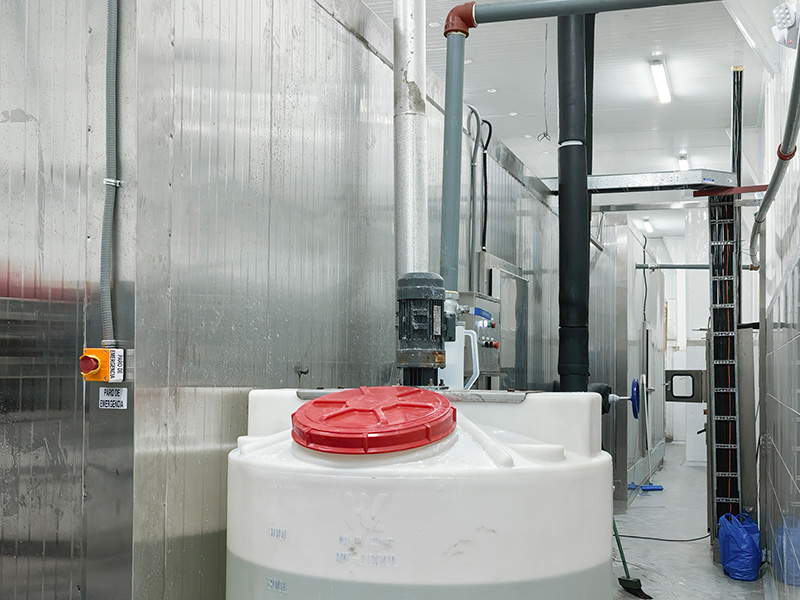 - Tunnel de surgélation par douche de saumure : pour la surgélation rapide initiale des crevettes.